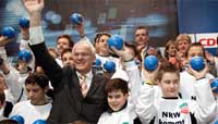 “Die CDU ist gut drauf” Hohe Zustimmung für einstigen Wackelkandidaten Jürgen Rüttgers Von Markus Dufner Elf Wochen vor der Landtagswahl in Nordrhein-Westfalen hat Jürgen Rüttgers, der Herausforderer von Ministerpräsident Peer Steinbrück, die lange Zeit vermisste Rückendeckung seiner Gefolgsleute erhalten. Jürgen Rüttgers erhielt bei seiner Wiederwahl zum CDU-Landesvorsitzenden am Samstag in Bochum zwölf Prozent mehr Stimmen als vor zwei Jahren. CDU-Chefin Angela Merkel gratulierte dem Ex-Zukunftsminister aus dem Kohl-Kabinett zu dem »tollen Ergebnis« von 95,6 Prozent. »Jürgen Rüttgers ist nicht nur der richtige Mann für den Landesvorsitz, sondern er ist auch der Richtige für das Amt des Ministerpräsidenten im bevölkerungsreichsten Bundesland.«  Es ist noch nicht lange her, dass in der Landes-CDU Rüttgers’ Qualifikation für Spitzenjobs mehr oder weniger unverhohlen in Frage gestellt wurde. Mit dem Bochumer Vertrauensbeweis und guten Umfragewerten für Schwarz-Gelb im Rücken scheint aus dem ehemaligen Wackelkandidaten ein Hoffnungsträger geworden zu sein. »Die CDU NRW ist gut drauf. Wir sind geschlossen. Wir sind programmatisch gut vorbereitet«, so Rüttgers optimistisch. Die Christdemokraten hätten ihre Probleme hinter sich, die Sozialdemokraten noch vor sich. Generalsekretär Hans Joachim Reck musste sich mit einem deutlich schlechteren Ergebnis als 2003 zufrieden geben, als er 85,5 Prozent erhielt. 72 Prozent der 618 Delegierten stimmten für ihn. Angela Merkel betonte in ihrer Rede in Bochum, Deutschlands Erfolg hänge von Nordrhein-Westfalen ab. Die CDU habe bewiesen, dass es den Menschen dort, wo sie regiere, besser gehe. Durch die fehlgeleitete Politik von Rot-Grün mangele es dem Land an Innovationskraft. Die unterdurchschnittliche Zahl von Patentanmeldungen in NRW sei ein Indiz hierfür. Auch bei der CDU-Parteibasis scheint nach der Landtagswahl in Schleswig-Holstein neue Zuversicht eingekehrt zu sein. »Das hat die Mitglieder unheimlich motiviert«, sagte eine Bundestagsabgeordnete. Debatten über die Kompetenz von Spitzenkandidat Rüttgers und mögliche personelle Alternativen seien verstummt, berichtete ein Landtags-Abgeordneter. In seiner Parteitagsrede warnte Rüttgers die Delegierten gleichzeitig vor Übermut. »Keiner von uns darf so tun, als sei das Rennen schon gelaufen.« Auch Steinbrück habe sich schon auf der Überholspur gesehen. »Jetzt steht er auf dem Standstreifen.« Trotzdem werde die SPD nicht kampflos aufgeben. Nach 39 Jahren Herrschaft an Rhein und Ruhr betrachte sie NRW als ihr Eigentum. Die Menschen jedoch wollten die rot-grüne Regierung in Düsseldorf nicht mehr, meinte Rüttgers. Bei mehr als einer Million Arbeitslosen, 110 Millionen Euro Schulden, fünf Millionen Stunden Unterrichtsausfall und 1,5 Millionen Straftaten im Jahr gebe es kein Zukunftsvertrauen mehr. »Damit NRW wieder kommt, brauchen wir eine andere, eine neue Politik – für mehr Wachstum und Beschäftigung, für ein besseres Bildungssystem und für weniger Bürokratie.« In ihrem Wahlprogramm kündigt die nordrhein-westfälische CDU für den Fall einer Regierungsübernahme einen strikten Sparkurs an. Bis 2012 sollen vier Milliarden Euro im Landesetat eingespart werden, unter anderem durch Kürzungen beim Landespersonal und bei Förderprogrammen, zum Beispiel für den Ausbau der Windenergie. Die Steinkohle-Subventionen sollen bis 2010 gekürzt werden. Wer dieses »Zukunftsprogramm« umsetzen soll, ist indes noch weitgehend unklar. In der CDU-Führung heißt es, Rüttgers sei es noch nicht gelungen, mit Ausnahme von Karl-Heinz Laumann als Arbeitsminister in spé die gewünschten Personen für sein Schattenkabinett zu gewinnen. (Foto: CDU) |