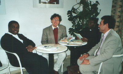 Allerdings erwies sich unser eigenes Projekt als schwer vermittelbar sowohl gegenüber deutschen muslimischen als auch christlichen Instanzen. So flogen unsere vierköpfige Delegation am 18. Februar 2002 von Hamburg nach Ostafrika. In Nairobi trennten sich unsere Wege. Zwei Mitglieder der Fact-Finding Mission sollten nach Uganda gehen. Dort gibt es schon viele Erfahrungen im internationalen christlich-muslimischen Dialog. Zwei Mitglieder sollten in den Süd-Sudan. Fatih Yildiz vom Bündnis Islamischer Gemeinden und ich hatten die Aufgabe, ind den Süd-Sudan zu reisen und dort Kurban, Hilfsgüter in Form von Schlachtvieh, zu bedürftigen Christen und Muslimen zu bringen. Darüber hinaus sollten wir Informationen zur Menschenrechtslage im Süd-Sudan sammeln. In Nairobi trafen wir Bischof Mazzolari in seinem Büro und konnten feststellen, dass er uns wirklich logistisch voll unterstützen würde. Auch beim New Sudan Council of Churches war man dazu bereit. Ein Besuch beim All African Council of Churches stieß uns gerade zu auf die Dialogstrukturen auf christlicher Seite. Reverend Arnold C. Temple, den ich von einem Seminar in der evangelischen Akademie Loccum kenne, begrüßte unsere Aktivität ebenfalls sehr, genauso wie der Chef des "Projekts für christlich-islamische Beziehungen in Afrika (PROCMURA), Dr. Mbillah. PROCMURA soll vor allem die Arbeit der evangelischen Kirchen mit dem Islam in Afrika koordinieren und fördern.